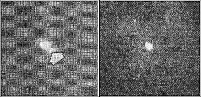 Esta falta de definición en las fotografías se hizo evidente incluso en las imágenes publicadas por los principales periódicos al día siguiente (derecha, click para ampliar), donde a pesar de haber utilizado cámaras profesionales con importantes teleobjetivos, apenas se aprecia una mancha borrosa o un punto brillante.