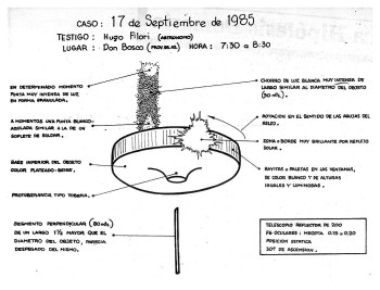 Así Filori nos entrega una minuciosa descripción gráfica de las diferentes particularidades del objeto y su comportamiento. Estas apreciaciones se vuelcan en el esquema que podemos apreciar a la derecha (click para ampliar) publicado al igual que la imagen de Melvern en la revista Cuarta Dimensión.