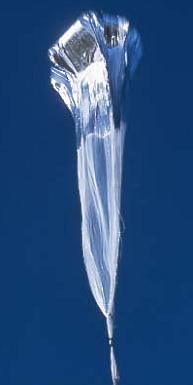 A la derecha vemos uno de estos globos en fase de ascenso en Ny Alesund, Isla de Spitzbergen, durante una campaña tecnólogica del CNES en el Artico en 1992. Se aprecia claramente la diferencia de composición entre los dos hemisferios. (Gentileza de Øyvind Nikolaisen)