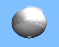 En el fotograma superior tenemos una toma lejana del objeto, donde apreciamos que el día estaba nublado. En la imagen inferior tenemos un acercamiento en donde claramente se aprecia por debajo del punto de reflexion de los rayos solares en la superficie del balón, el resto del cuerpo del globo. El efecto mimético a que me refiería unos párrafos más arriba no se produce completamente ya que al haber nubes, éstas se reflejan parcialmente en el cuerpo del balón haciendo perfectamente visible su contorno.