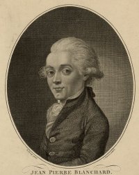 Described as humorless, egotistical, and mean-spirited, Blanchard became infatuated with ballooning after hearing of the Montgolfier's exploits. His other idiosyncrasies aside, Blanchard was very mechanically inclined. While in his teens, he built a four-wheel vehicle he called a velocipede, and a few years after that tried to build a flying machine (which didn't fly.) Within two years of focusing on balloons, he was the world's best known and most widely travelled aeronaut. Blanchard is best remembered for being the first to cross the English Channel by balloon on January 7, 1785. Dr. John Jeffries accompanied him on the flight.