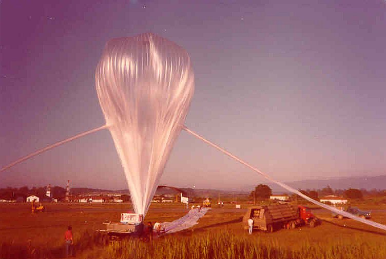 A science requirement by Dr. Parnell for a minimum of five days flights was the initiation for NSBF to support Long Duration Balloon flights. The initial concept was to adapt Line-of-Sight instrumentation and systems to support these flights with minimal monitoring using the ARGOS satellite system. The NASA Long Duration Ballooning project started at NSBF in early 1987 resulted in the launch of two LDB zero pressure balloons from Alice Springs, Australia in early 1988. The plan for both of these flights was to circumnavigate half the globe with flight terminations in Brazil after 7-10 days of flight. An NSBF team was stationed in Brazil with assistance from the Brazilian ballooning organization at INPE to implement the payload recovery. Both balloons ultimately made the flight to Brazil. Neither one had any real time over-the-horizon commanding capability. Each carried about 3,000 lbs of ballast with an auto-ballast system controlling ballast drops. One of the flights was almost perfect staying above 100,000 feet altitude over 95% of the flight. The other flight was almost a disaster! The auto-ballast system did not function during the first few days and no ballast was dropped. As the balloon approached Africa it appeared that it would likely drop back into the tropopause and return to the ground. For some unknown reason, more than likely due to a near-by electrical storm, the payload dropped all of the ballast, shot up to 130,000 feet altitude and crossed the lower part of Africa and south Atlantic Ocean continuing to Brazil. The balloon flight was terminated by LOS command in Brazil by NSBF staff and the payload came down on top of a house in a small town west of the coast. The 1500 lb payload penetrated the roof of the house, but no one was injured. NSBF was able to negotiate settlements for damage and retrieved the payload.