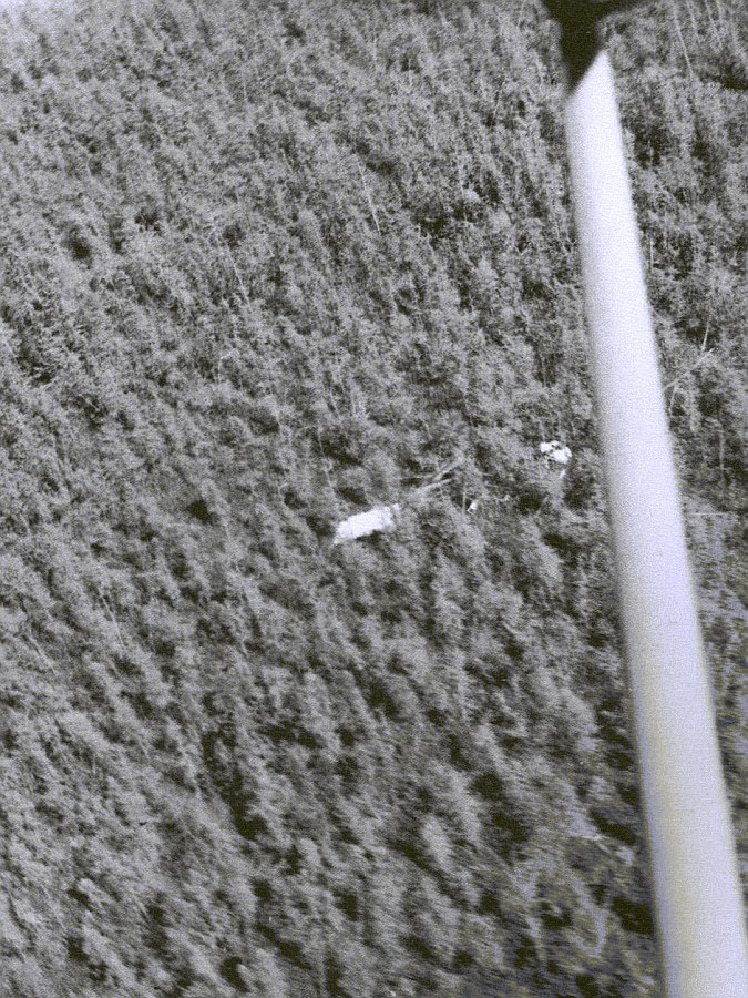 A little after 7:00 we caught a glimpse of the opened parachute. At 7:40 the message came that the gondola had fallen in an impenetrable wooded bog. Soon afterward we heard that Major Simons, taking a calculated risk, had landed an Aeronca on a plot of high grass two miles from the scene and was beginning a trek across a treacherous bog. A helicopter had been dispatched from Duluth.