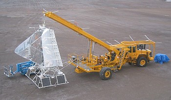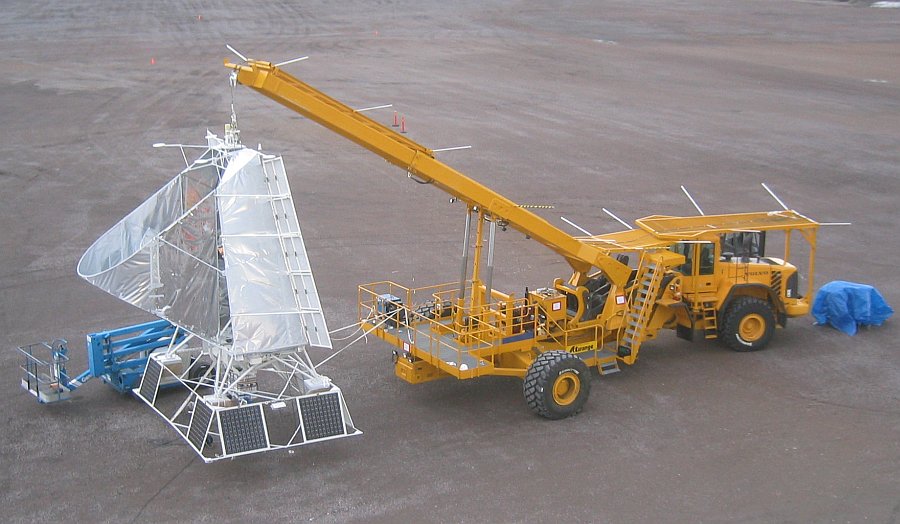 El incremento de las capacidades de lanzamiento llevó a tener que adquirir un nuevo vehículo de lanzamiento. El camión Volvo de 40 toneladas que vemos en la imagen y que ha sido apodado "Hercules" vino a reemplazar a la vieja grúa utilizada antiguamente para sostener las cargas útiles durante los lanzamientos llevados a cabo por método dinámico. Con su brazo hidráulico y una alta capacidad de maniobra, Hercules puede manejar cómodamente gondolas de instrumentos de hasta 6000 libras de peso, lo que junto al incremento de la superficie de lanzamiento permite la operación de balones estratosféricos de un volumen de 1.000.000 de metros cúbicos, es decir de los mas grandes modelos en uso actualmente. A la derecha podemos ver el nuevo vehículo en acción mientras sostiene el telescopio BLAST (primer instrumento lanzado en vuelo transatlántico) durante una prueba de izado en el año 2005 (click para ampliar).