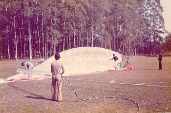En esa época se utilizaba como pista de lanzamiento, una cancha de fútbol ubicada dentro del predio de la agencia, tal y como se aprecia en la foto de la derecha, cedida gentilmente para StratoCat por el sr. Nilton B. Renó, quién participó de muchos de esos lanzamientos en su calidad de técnico del organismo.