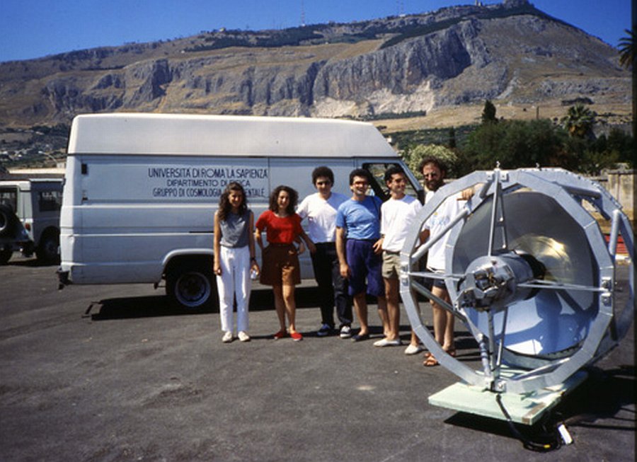 The first flight carried out under full italian control was the ARGO mission, developed by Rome University (La Sapienza), ENEA Frascati, and IROE-CNR. It consisted in a telescope built to detect anisotropies in the Cosmic Microwave Background at different angular scales. At left can be seen a picture of the instrument in Trapani prior to the flight (click to enlarge). The telescope was launched on August 4, 1993 using a one million cubic meter balloon being succesfully recovered 20 hours later in Spain by a local team. As a direct scientific result of the flight, high quality data was obtained while in the technical side was clear the fact that the Italian balloon program had matured enough to walk on his own.