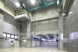 In the floor plant, are located two large rooms devoted to the integration of the payloads (image at left - click to enlarge) with direct access to the launching pad. The bigger assembly hall has two 10 meter high overhead cranes with a lifting capacity of 2 tons and the smaller one has one 4 meter high crane with similar capacity. The smaller hall serve as workshop too being installed several machine tools. Outside the building there is a non-magnetic calibration stage based in a turntable with an azimuth scale, for use by the scientific teams to prepare the geomagnetic compasses often used to monitor the payloads attitude during flight.