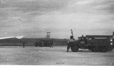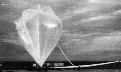 Balloons were launched using a heavy truck with a specially fitted metal frame -denominated the fisher launcher- wich served to hoist the payload at launch, as can be seen in the above right image. The balloons launched from Adana were pre-programmed to automatic turn-on it's location beacon after 50 hours of flight, which was the estimated time it would took them to cross the sino/soviet territory. Below this lines can be seen a map showing the forecated trajectory (full-line) and the real one (dotted) for two balloons launched from Adana.