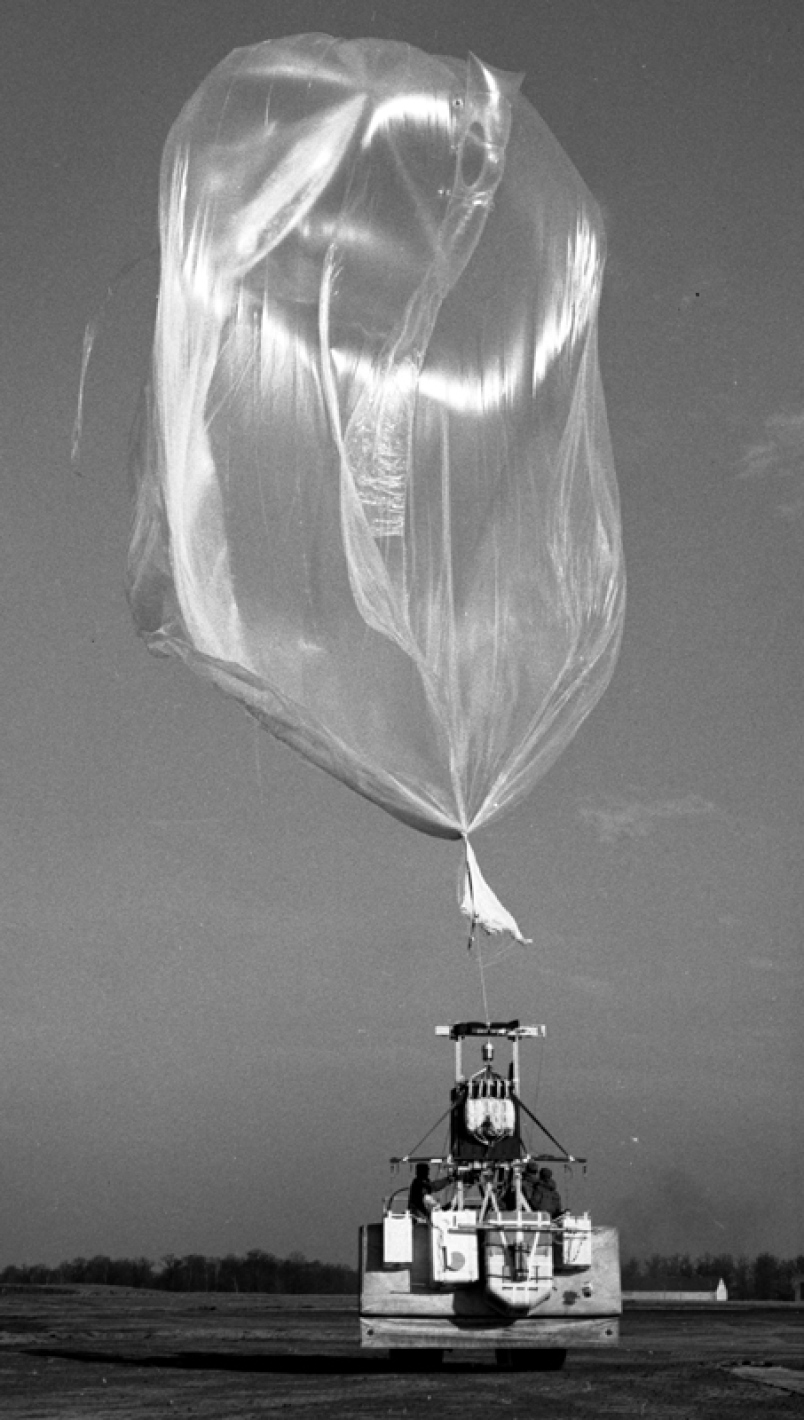 The platform -denominated Weapons System 119L or WS-119L- consisted basically of a polyethilene balloon, to which was attached through a special bar assembly a gondola containing an automatic photographic system, denominated DMQ-l, composed by a duplex camera which had two 6-inch lenses on opposite sides. The camera was capable of obtaining about 500 pictures, covering 50 miles on either side of the balloon path. On the bottom of the box a photo cell turned on and off the camera according to the illumination below. Additional items were a thermal box containing batteries and electronic gear, two ballast boxes and parachutes for descent and recovery.
