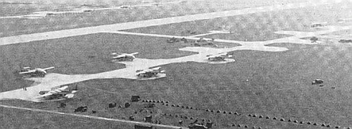Despite the secrecy, the allies were well aware of the activities carried out there so the airfield suffered heavy bombing attacks between 1944 and 1945, with extensive damage to the installations. When the end of the war was close and even before the capitulation of the German troops, the airfield was occupied by the American 12th Armored Division. A few days later, after some repairing, the airfield was redesignated Advanced Landing Ground "Y-90 Giebelstadt" with combat units arriving from the 50th Fighter Group and the 417th Night Fighter Squadron, the later for night fighter defensive interceptor missions against any rogue Luftwaffe aircraft still in the skies.