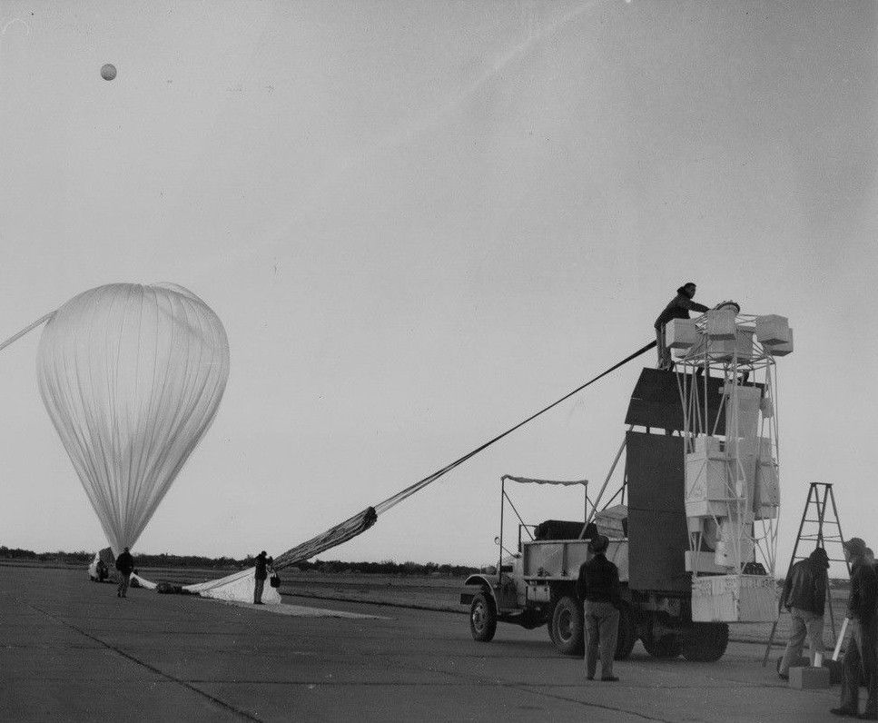 For this flight, the launch site was moved 250 miles west to Huron, South Dakota, fearing that if the balloon was launched from the Minneapolis area the stratospheric winds would carry it as far as Lake Michigan.