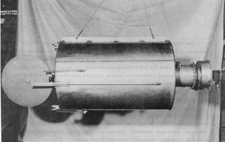 General Mills engineers designed the first "Ashcan" filter sampler (left) which was flown operationally from November 1956 until December, 1959. This sampler utilized a Torrington 403 blower to pull air through five square feet of low background, low pressure drop filter paper. Sampling rate depended upon altitude and voltage applied, but averaged between 500 and 600 cubic feet per minute. After discovery in the laboratory of some inconsistencies in the volumes measured, in later models of this instrument were incorporated 40-foot exhaust ducts to prevent re-entrainment of sampled air. Also in later years the collector unit was modified and improved many times.