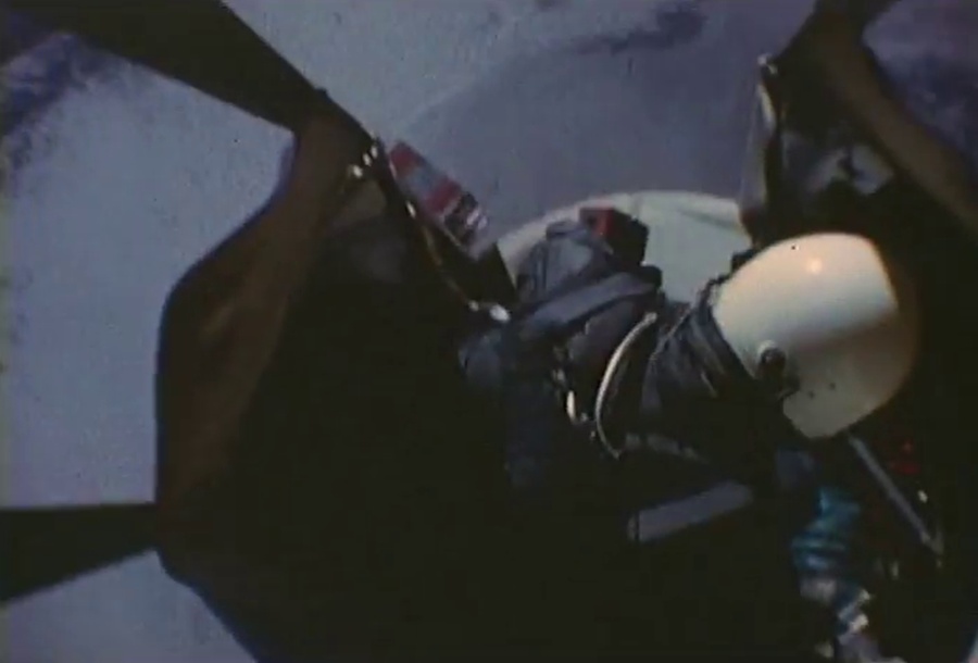 The three jumps were made by then Captain Joseph W. Kittinger Jr., from an open gondola hanging from a stratospheric balloon so he wore a full pressure suit.