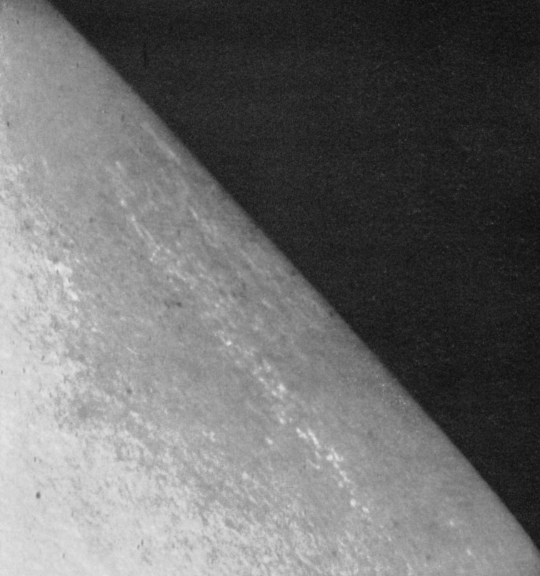 A scheme of the system flown in 1959 -an improved of the one flown in 1957- can be seen at left (click to enlarge). The telescope which was designed and constructed by the Perkin-Elmer Corporation, had an eight-foot long tube, at one end of which was a parabolic quartz mirror 12 inches in diameter. At the other end of the tube, a rotating plane mirror used in the first flights was replaced by a tiny fixed stellite mirror as a form to reduce the mechanical vibrations caused by the rotation. This mirror had an area of 2.0 x 2.8 mm and intercepted an area of 2.0 x 2.0 mm from the 23-mm diameter primary image of the sun. In order to prevent the stellite mirror from getting hot, it was mounted in a 2 mm thick copper sheet which extended across the 18-inch diameter of the tube. This sheet was fastened to the main tube in such a way as to make good thermal contact with the tube, thus providing sufficient heat conduction away from the stellite mirror that it did not heat up enough to cause serious optical disturbances. A prism reflected the light gathered by the stellite mirror back along a path above the tube of the telescope into a 35-millimeter motion-picture camera. A lens in the light path enlarged the image presented by the primary mirror to the size of an image that would be produced by a 200-foot telescope. At this magnification, each frame of the 35-millimeter film covered a rectangle about 50,000 by 35,000 miles on the surface of the sun. Exposures were made at a rate of one per second, each lasting a thousandth of a second. Another modification to the design after the 1957 flights was the introduction of a prism type beam's splitter behind the main shutter which divided the incoming image into two beams of equal intensity. One beam went directly through the beam's splitter to form an image on the photographic film, while the other beam was transmitted to a television camera to form an image on a vidicon tube.