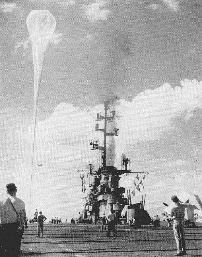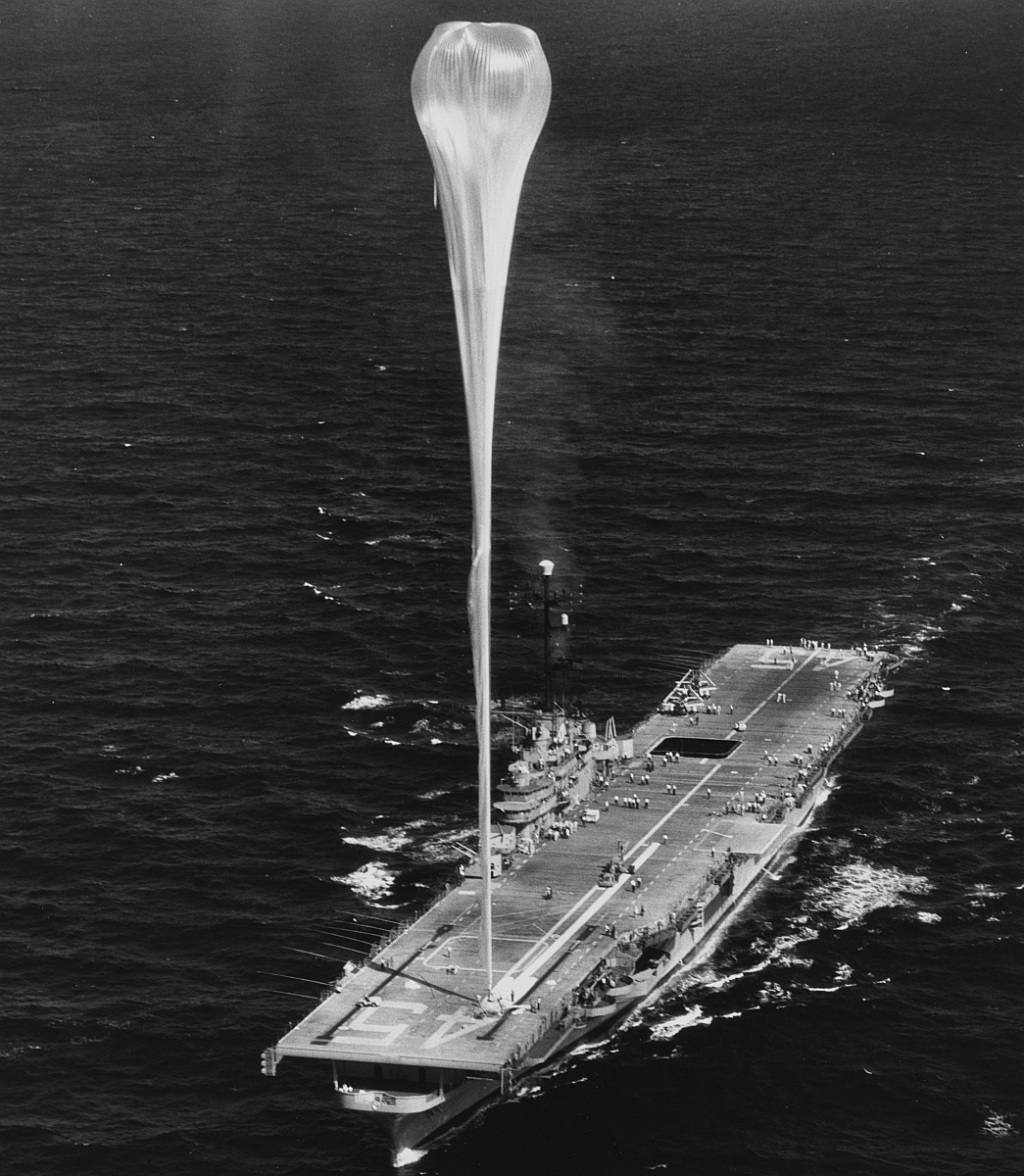 The best place to launch the huge balloons needed for the task was the deck of an aircraft carrier which sailing with the prevailing winds in open sea, generated an artificial "no wind" condition to allow the vertical inflation and launch of the balloons. For this series of flights the USS Valley Forge was selected, operating in the Caribeean sea, near the Lesser Antilles. The launch operations onboard where in charge of Winzen Research Inc. of Minneapolis.