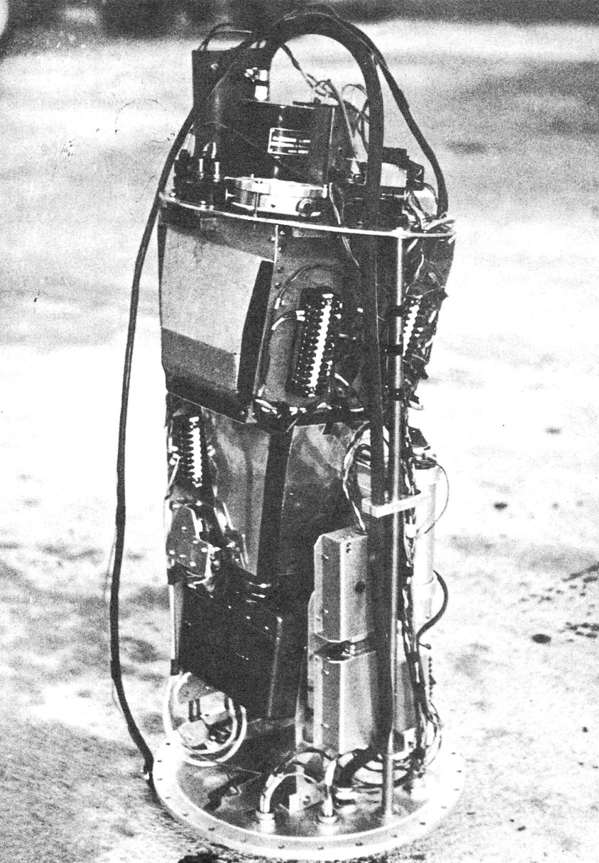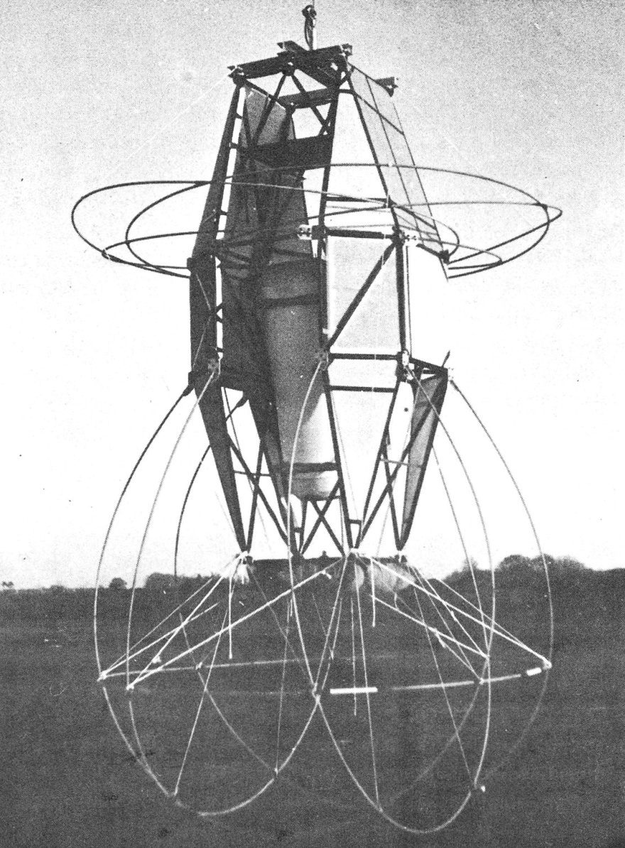 In the image at left can be seen an scheme of the scientific instruments used (click to enlarge). The gondola, constructed from an aluminum frame with triangulated structures and a height of 2.1 meters, featured conical joints allowing rapid assembly and replacement of damaged parts. Weighing 18 kg, it included a sealed, thermostatically controlled cylindrical compartment for most of its equipment. Measurements were made using instruments such as a Thommen meteorological probe for pressure, temperature, and humidity, a direct-read barometer, thermistors, and a potentiometric accelerometer for mechanical stress analysis. The gondola's attitude was monitored by an HRA 31 magnetometer, measuring Earth's magnetic field across three orthogonal axes with one-degree accuracy.