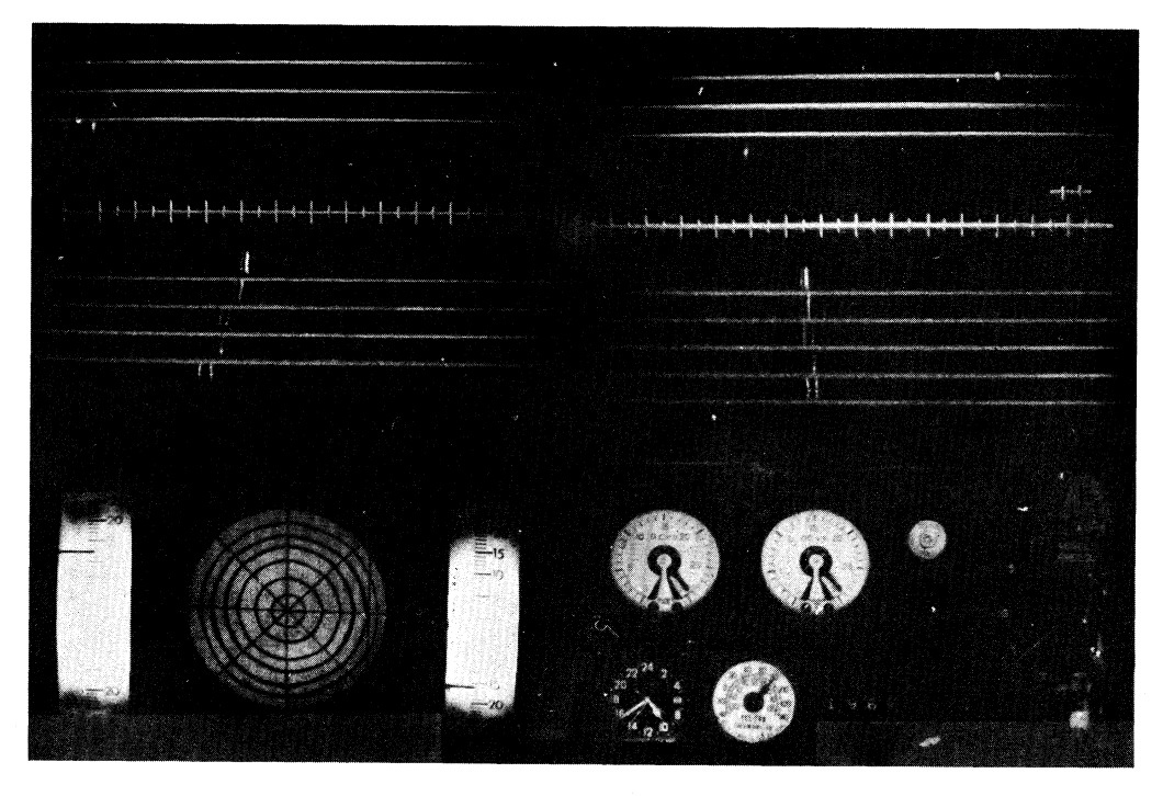 In conjunction with the triggering of the spark chamber, auxiliary data were recorded giving the orientation of the gondola relative to the earth's magnetic field, the barometric pressure , the temperature, the time, and other parameters relevant to the internal functioning of the equipment. The figure at right is a photograph of a gamma ray recorded during the flight of the detector.