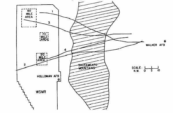 After launch the balloon take a northerly path and passed over the Sacramento Mountains. The balloon was finished in the White Sands Missile Range, in the so called "90 mile area".