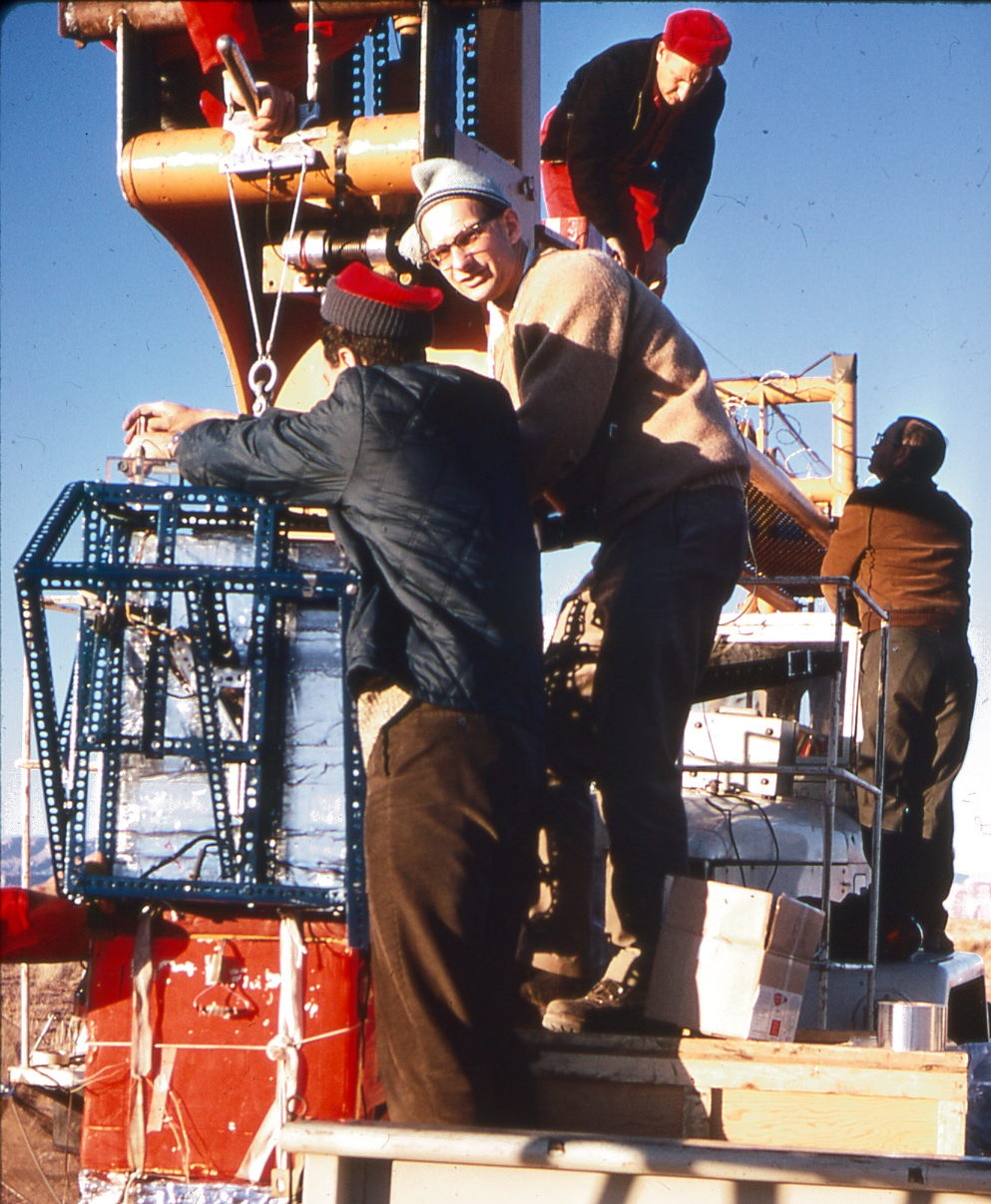 The instrument was mounted in a balloon gondola constructed of aluminium slotted angle. The helium dewar vessel, preamplifier, modulation mirror and calibrator were mounted on the front. A compartment insulated with 3 in. thick styrofoam covered with aluminium foil contained the electronics, recorder and batteries. The dimensions of the gondola were 22 x 29 x 36 inches high. The weight not including the radio tracking beacon and balloon equipment was about 115 lb.