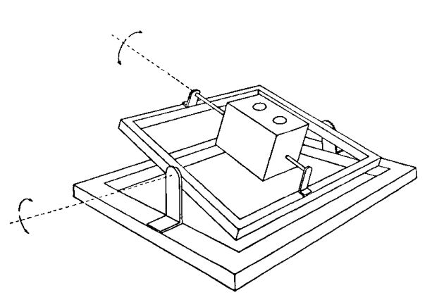 The pyrheliometers were oriented towards the Sun using a system designed to operate around the two axes shown in the figure at left, rather than the azimuth and elevation axes. The data generated by the pyrheliometers as well as the auxiliary information required for the interpretation of the results and monitoring the performance of the various units were recorded by means of an on-board digital magnetic tape recording system. The data were also telemetered by means of an FM/FM telemetry system, this system being used as a backup and also to monitor the overall system performance during the flight on a real time basis.