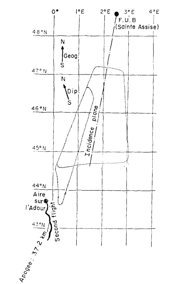 The objective of the flight was to investigate the Earth-ionosphere wave-guide, using a series of receivers onboard a balloon in the stratosphere that received the electromagnetic field signals transmitted by the 166 kHZ antenna of the Sainte-Assise complex, a very low frequency (VLF) radio transmitter and military installation located near Paris. The experiment was carried out by the Groupe de Recherches Ionospheriques of the Centre National de la Recherche Scientifique (CNRS) from France. The observations were intended to made new contributions to the study of VLF propagation providing information about the influence of both the ground and the ionosphere.