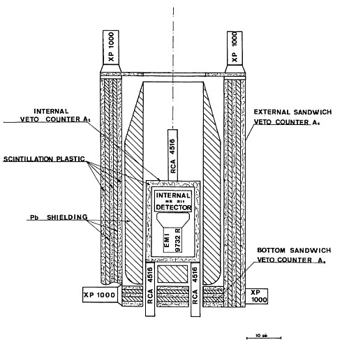 This balloon borne gamma-ray telescope has been designed to measure the direction of arrival and energy spectrum of extraterrestrial gamma-rays in the energy range from 0.8 MeV to 10 MeV. The scheme of the instrument can be seen at left. Directionality, 14° F.W.H.M., measured at 2.7 MeV, is achieved by the collimation technique with semiactive shielding consisting of a multiple sandwich of lead sheets and scintillation counters. The gamma-ray detector is a low atomic number, Boron loaded, liquid scintillator NE-311.