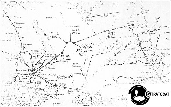Aditionally the balloon carried on board a Maurer photographic camera loaded with infrared film. During the flight were obtained the first pictures in colour taken from above 20 km of altitude in Argentina.