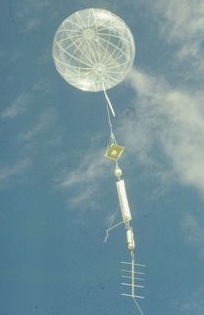 The flight train was located below the balloon and was 15 meters long. At train's lower end was located the UHF antenna, and above it was a tube containing an altimeter, a magnetometer, and an electronic temperature sensor followed by a second tube containing the telemetry transmitter. It emmited in Morse code the data collected by the sensors, on the 15 MHz band. From both sides two pieces of electrical cable with a length of 5 meters conformed a dipole antenna for the transmiter. Finally, near the balloon envelope was located a box containing the pressure sensor and the solar cell panel. The power was supplied by these cells except during some night flights for which an additional lithium battery package was incorporated.