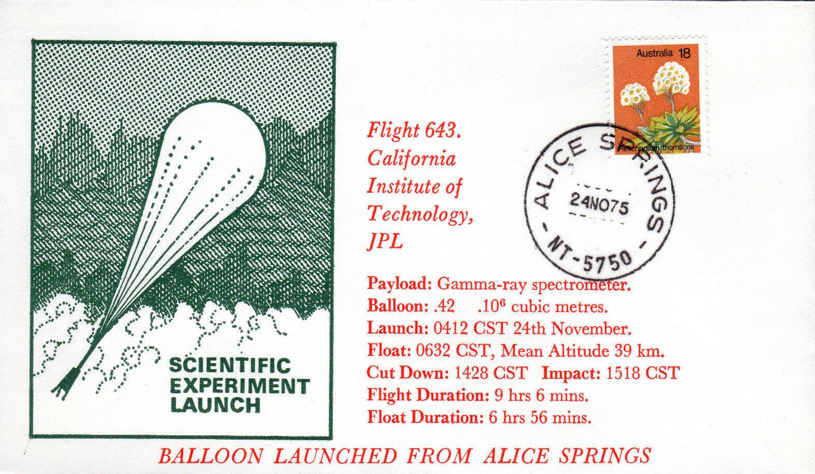 Launch site: Australian Balloon Launching Station, Alice Springs, Australia
