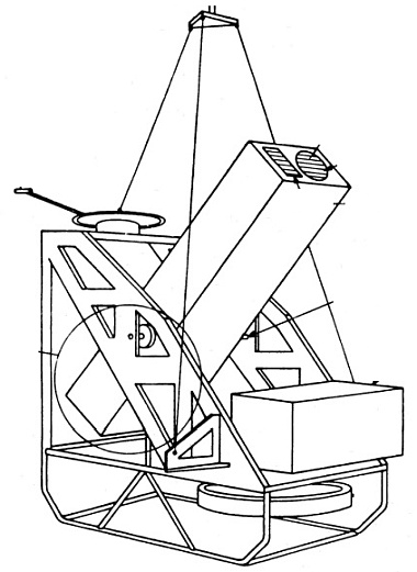 The instrument also incorporated two 16 mm cameras for determining its orientation by photographing stellar fields, one aligned with the collimator's viewing direction and another perpendicular to it. These cameras used 135 mm, f/2 lenses, covering about 4° × 3° of the sky, and employed Kodak 2X film with a limiting magnitude of 78 in one-second exposures. Each exposure was time-stamped with better than 0.1 s precision using an internal optical time code. The relative alignment between the collimator and cameras was maintained to within 5 arcseconds using an optical fiducial system. A servo magnetometer provided high-frequency monitoring of the telescope's motion to complement the slower photographic sampling.