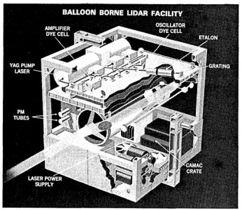 This instrument was part of NASA's program to investigate the seriousness of man-made stratospheric ozone depletion via high altitude aircraft exhaust or the release of chlorofluorcarbons into the lower atmosphere. Specific goal of the balloon-borne LIDAR was to measure of ozone and hydroxyl radical in the stratosphere.
