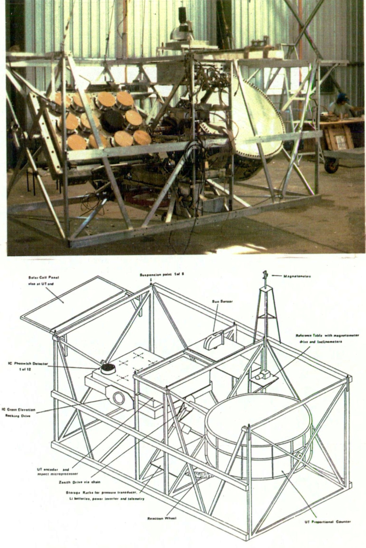 The other instrument was a multilayer, multianode proportional counter with an area of 5200 cm2 and 21 cm active depth, filled with Xenon at 1 atmosphere. Its 10-100 keV range was spanned by 20 energy channels. A thin alloy honeycomb collimator defined the 2° FWHM field of view, while the rear and sides were screened by a graded shield. Background due to charged particles was also removed by active screening.
