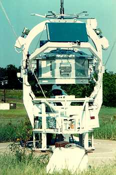 The pressurized container (or detector "can") was mounted onto a 0.75" thick support plate which, in turn, was mounted within the supporting arch on the gondola via a 1 1/2" horizontal shaft. This shaft also served as the rotation axis of the central detectors. This mounting was such that the detector assembly could be moved independently in zenith angle over a range of 0° to 85° on either side of the supporting arch. The detector can was driven by a stepping motor in commandable increments. The mask was mounted, parallel to the detector, on a support arm which could be raised and lowered in elevation. In order to maintain a balanced gondola, a second (counterweight) arm was symmetrically mounted with respect to the mask arm and carried identical weight.