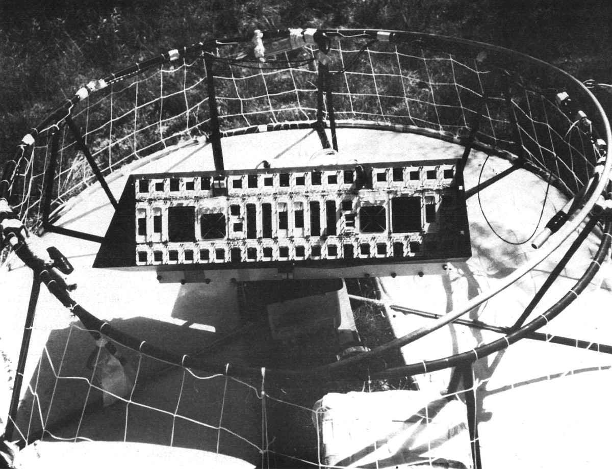 Scheme of distribution of the modules on the panel Image of the 1985 balloon flight solar panel Aluminium hoop assembly with tracker mounted Inflation of the main balloon Balloon release