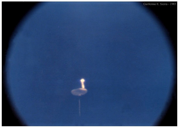 The balloon was launched from the grounds of the Satellite Tracking Station of CNES in Paardefontein, near Pretoria on July 26, 1985. It started an eastbound flight path across the Indian Ocean and the Pacific Ocean until it came down in the Chilean Patagonia after 15 days of flight. Due to telemetry problems, scientific data were transmitted only 10 days. After separation of the payload the MIR continued flying above the Atlantic Ocean until wind reversal returned it to southamerican coasts appearing above Buenos Aires and nearby cities on September 17, 1985 causing great impact and an infamous UFO case known as "El OVNI del 17" (spanish for "the UFO of 17th") which still today, generates a though debate. In the references below there is a link to a dossier I've wrote many years ago about that UFO case. The research I've made along five years regarding that sighting eventually led to the creation of this website.