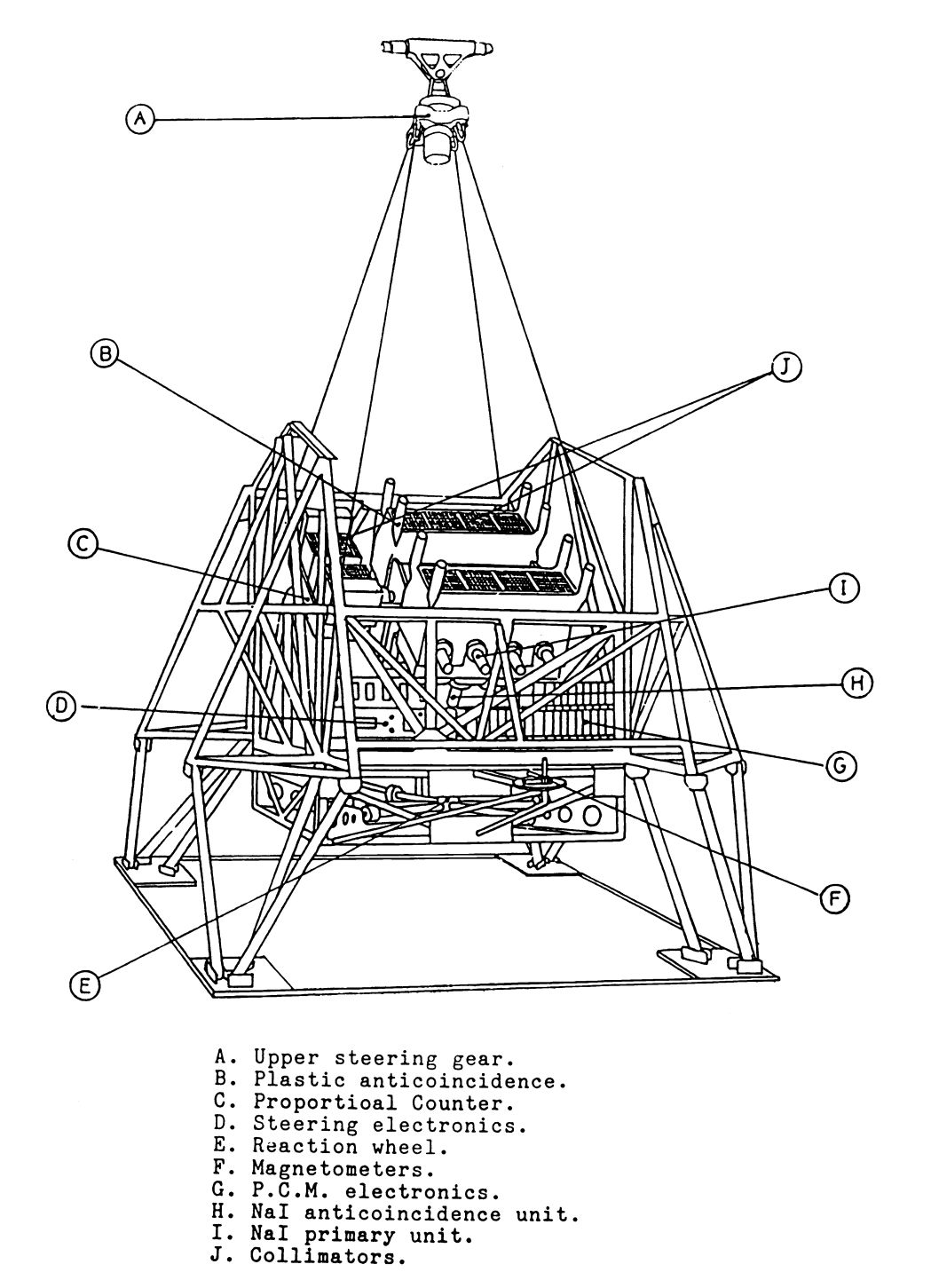 Telemetry and data handling supported flexible observation modes and variable data rates. Event data, timing information, and housekeeping parameters such as voltages, temperatures, and pressures were transmitted to the ground at selectable bit rates, allowing a trade-off between telemetry load and time resolution. On the ground, dedicated support equipment decoded, recorded, displayed, and performed preliminary analysis of the incoming data during both flight operations and pre-flight calibration.