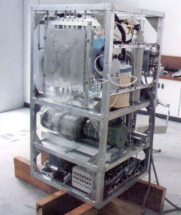 Once the balloon reached the stratosphere the instrument initiated a sampling sequence of the sourrounding air. The sampled air was first compressed by a mechanical booster pump, and then by a one stage rotary pump. Oil and water vapours were removed in a liquid nitrogen cooled trap, and the air was blown through one trap filled with activated charcoal, and maintained at 120º K by liquid nitrogen. The sampling device comprised five such independent traps selected by valves operated by remote control. A total of four samples were collected during the flight while a fifth trap was maintained closed during the flight as a blank, in order to detect the presence of any contamination.