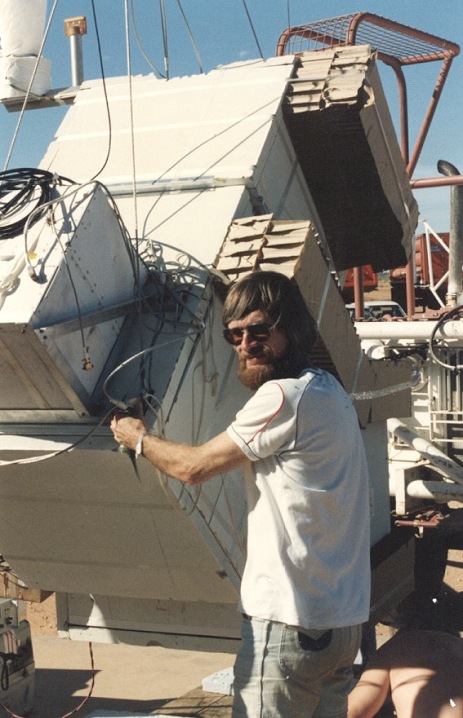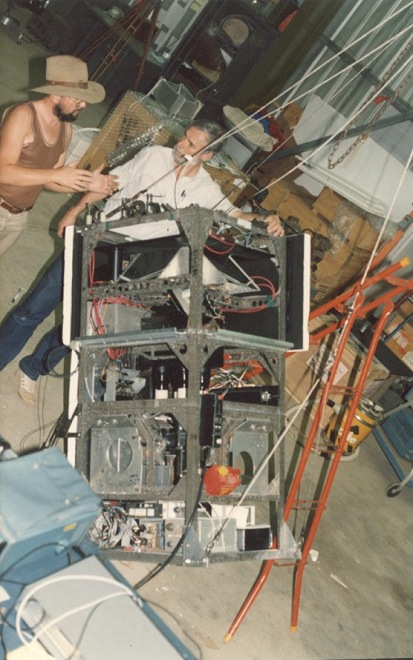 The Gamma-Ray detector was composed by a 30 gap optical spark chamber having a geometric area of 400 cm2 which was triggered by the coincidence signal from two plastic scintillators and a directional Cerenkov counter responding only to downward moving particles. A five sided plastic anticoincidence shield provided rejection of charged particles. The spark chamber plates were made of stainless steel (total thickness 18.7 mm) and acted as gamma-ray converters. The 4mm gap between successive plates was filled with a helium-neon gas mixture at 1.2 bar. It defined an acceptance cone of ~30° HWHM about the spark chamber axis with a flat response out to ~ 11°. For each event two orthogonal views of the spark patterns were recorded on 16mm film along with the time according to an on-board crystal clock and the output from a 3 axis fluxgate magnetometer which determined the orientation of the payload with respect to the Earths magnetic field.