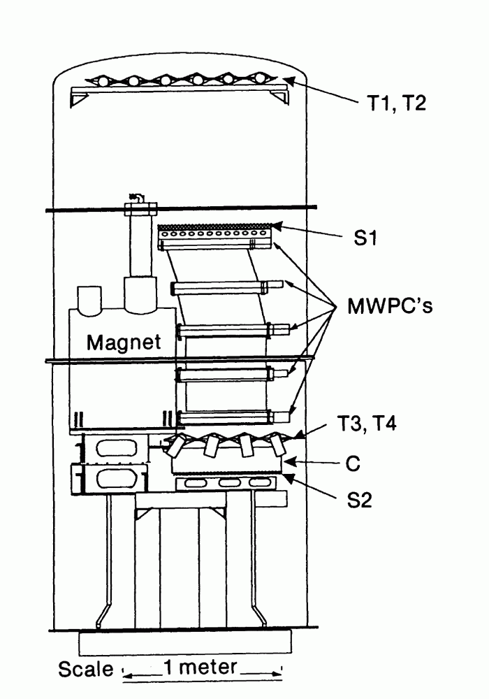 The MWPC stack consisted of eight identical 50 x 50 cm2 chambers with a total separation of 110 cm. All eight planes provided position measurements in the x-direction (perpendicular to the magnet axis), and four measurements were made in the y direction (parallel to the magnet axis).