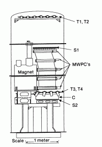The instrument flown on this mission is illustrated in the figure at left (click to enlarge). It consisted of three principal components: a superconducting magnet spectrometer with a multi wire proportional counter (MWPC) tracking system; a time-of-flight (TOF) system; and a liquid Cherenkov detector. The magnet was based on a single coil of copper-clad NbTi wire, that produced a magnetic field of 33 kG at the center of the coil.