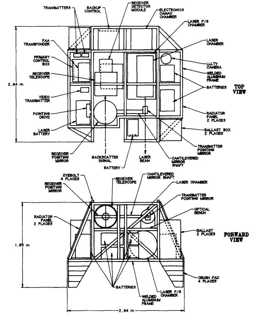 The biaxial lidar system was mounted on an optical bench made of a rigid trussed structure of welded aluminum angle. Prior to payload fabrication, extensive structural and thermal analyses were performed to predict structural deflections.