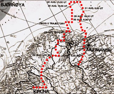 After a failure and a landing in a swamp, in the previous mission, the gondola was refurbished and ready for flight three months later. It was launched as PIROG 5 -the sixth mission of the program- from the European Space Range (ESRANGE) near Kiruna, Sweden. This time the launch and flight was nominal but when the cut down command was sent to separate the payload from the balloon, nothing happened. The backup system, also failed leting the scientists nothing else to do than to helplessly watch the balloon drift slowly North-east out over the Arctic Ocean. After a few days it turned to South-east and drifted over the Murmansk area in Russia. It continued to drift south for a few days and then disappeared somewhere in the western part of Russia. The soviets who were tracking the overflight of the runaway balloon in their radars, probably remembered the US efforts to spy Russia using balloons in late 50's, and took the balloon as a reconnaissance device. Thus they dispatched two Sukhoi fighters to intercept and shootdown the visitor. Incredibly, the gondola landed rather undamaged in a wooden area near the finish border. Several months after the incident, following some diplomatic negotiations it was eventually returned to SSC.