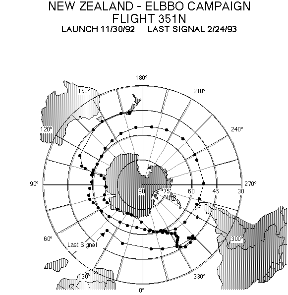 The balloons were launched from Dunedin, New Zealand and subsequent trajectories took them to latitudes between 29 and 85 degrees south and all longitudes. The payload was composed of instruments to measure the vector electric field, electric conductivity, magnetospheric VLF HISS, VLF subionospheric waves, atmospheric X-rays and environmental temperature and pressure.