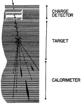 The spacer section consisted of honeycomb paper with a few thin emulsions positioned at regular intervals that facilitated the tracing of tracks through it. Finally, the calorimeter was the energy measuring portion of the apparatus. It consisted of 1.0 and 2.5 mm thick lead sheets alternating with thin emulsion plates and x-ray films. Gamma rays emanating from a vertex in the target initiated electro-magnetic cascades in the calorimeter. The cascades produced dark spots in the x-ray films, the observation of which provided the trigger for an event. The events were traced back from the calorimeter, through the spacer, to the vertex in the target by observing associated tracks in the emulsions.