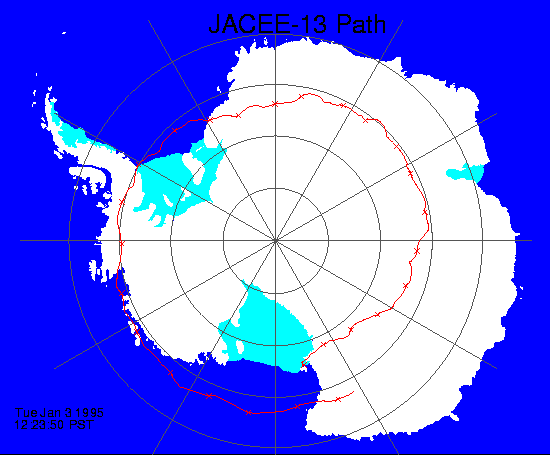 The balloon, was launched by dynamic method on December 22, 1994 from McMurdo Station, and after a nominal ascent to float altitude it started a counter clockwise turn around the south pole. The balloon made one full revolution of Antarctica at an altitude of 131,000 feet. The balloon and payload were brought down by radio control from an ski-equipped Hercules LC-130 plane, on January 3 1995. At that time the LC-130 was unable to land and recover the payload due to ground fog in the landing area. On January 8 weather had improved and a second LC-130 was sent into the area but when they attempted to land they found the hard snow surface unsafe due to high, hard mounds of snow called sasturgi. Two days later a Twin Otter plane attempted to land in the same area with the same results.