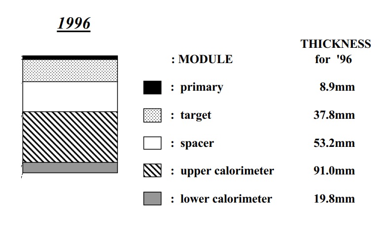 The detector was passive, consisiting of photo-sensitive materials, targets and absorber materials. The chamber was divided into five parts: primary block, target block, spacer block, upper calorimeter and lower calorimeter or diffuser. Were used three kinds of photo-sensitive materials: nuclear emulsion plates, Fujy #200 type X-ray films and screen-type X-ray films (SXF). The primary module served to identify the primary particle. It was composed of several photo-sensitive materials only. The target module meant to produce the interaction was composed of acrylic plates or stainless steel plates which were inserted as target material. The spacer module used to separate the secondary particles which was mainly composed by styrofoam. A large spacer enabled to measure the emission angle of secondary particles. These data was used for energy estimation of primary particles. Finally the calorimeter module was used to induce and to observe the electromagnetic cascade showers. It was composed of multi-layered lead plates which were inserted with photo-sensitive materials. The calorimeter was different from orthodox calorimeter type chambers with thick absorbers (lead plate) of 8-10 radiation lengths due to constrains in weight. Since the volume of balloon used was 180,000 m3, the chamber was strictly limited within 250 kg in each flight to maintain an acceptable flight level. This condition inevitably forced to use thin-type emulsion chamber so in order to obtain the energy spectra of the cosmic-ray primaries using such a chamber, were devised complex methods for post-flight energy determination, charge determination, chamber efficiency calculation and so on.