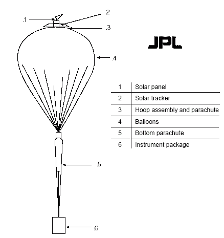 The main components of the balloon flight system are shown in the drawing at left.