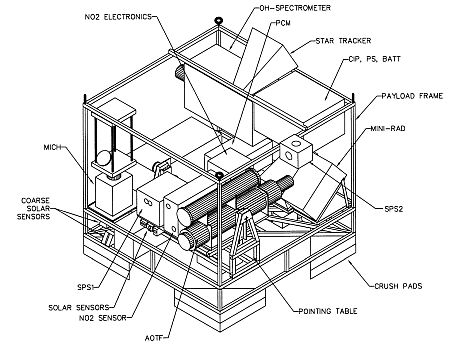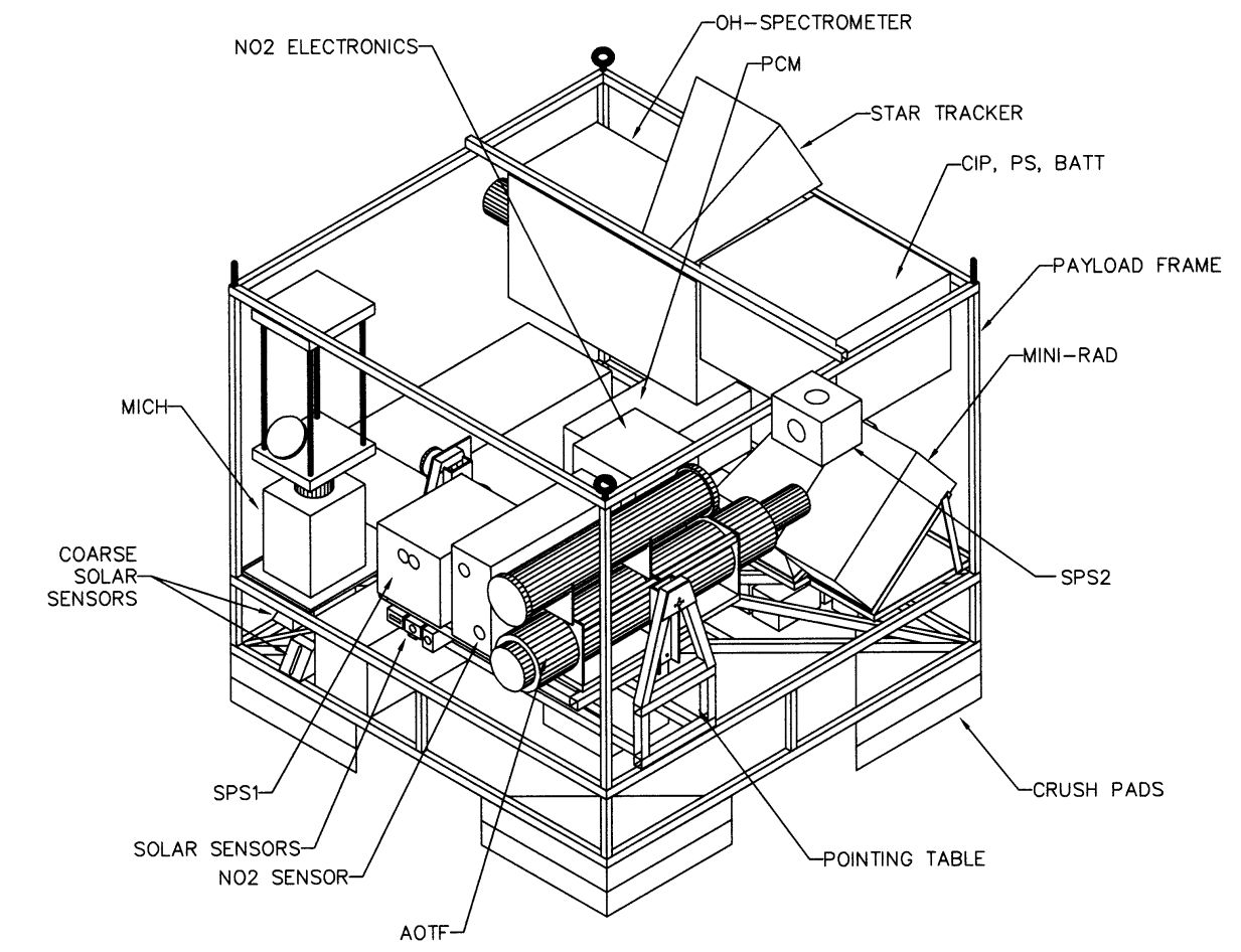 The balloon carried a payload of six instruments to measure atmospheric composition and to investigate possible causes for the lack of agreement between theory and observations from the past.