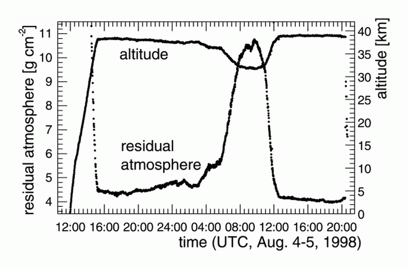 After a initial ascent phase the experiment reached a float altitude of 36 km roughly 3 hr after launched. The figure at right shows the flight profile.