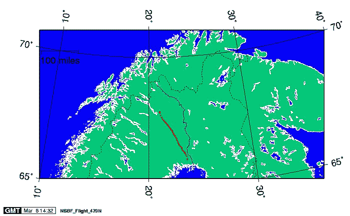 Landing site: 133 miles from Esrange, Sweden